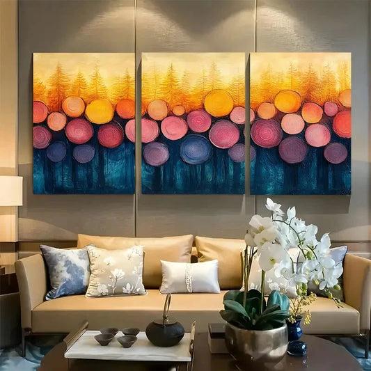 3pcs Pastel Grunge Forest Tree Rings Abstract Metal Print Ready to Hang Art