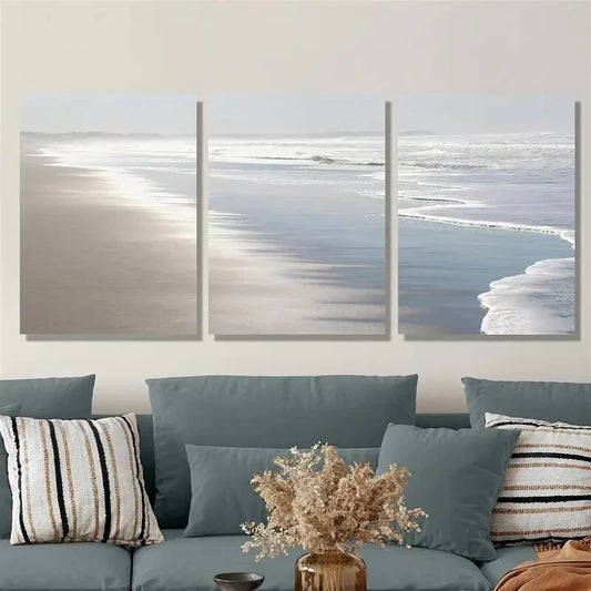 3pcs Beach Scenery with Ocean Waves & Sandy Shore Metal Print Ready to Hang Art