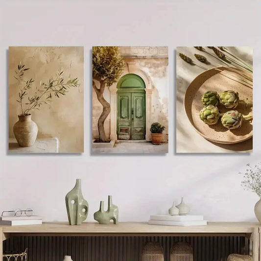 3pcs Rustic Italian Vintage Olive Tree & Vase Metal Print Ready to Hang Art