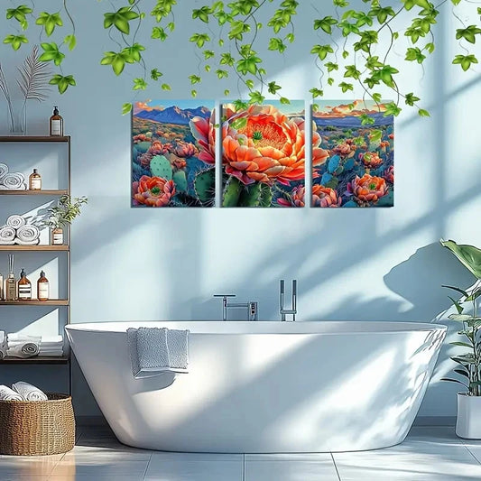 3pcs Cactus & Desert Flowers Metal Print Ready to Hang Art
