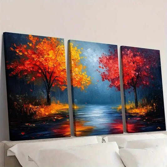 3pcs Serene Sunset Lake Scene with Autumn Trees Wall Art Set Canvas Framed 40x60cm - High Quality Print 100% Australian Made Wall Canvas Ready to Hang