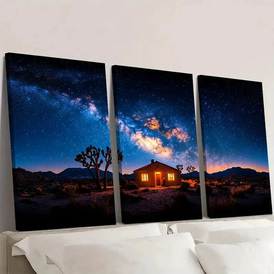 3pcs Joshua Tree & Cosmic Starry Night Sky Wall Art Set Canvas Framed 40x60cm - High Quality Print 100% Australian Made Wall Canvas Ready to Hang