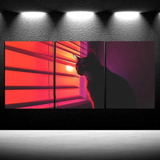 3pcs The Cat Gazing at the Sun Metal Print Ready to Hang Art