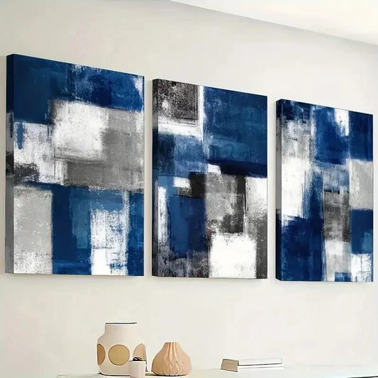 3pcs Abstract Blue Color Block Geometric Wall Art Set Canvas Framed 40x60cm - High Quality Print 100% Australian Made Wall Canvas Ready to Hang