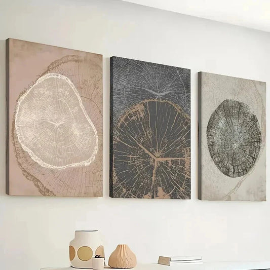3pcs Classic Vintage Tree Ring Decor Wall Art Set Canvas Framed 40x60cm - High Quality Print 100% Australian Made Wall Canvas Ready to Hang
