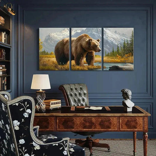 3pcs Artistic Bear Landscape Mountain Scenery Metal Print Ready to Hang Art