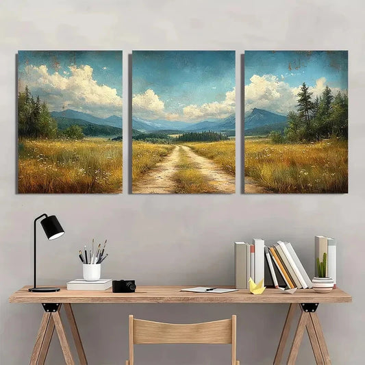 3pcs Rustic Countryside Pathway Landscape Metal Print Ready to Hang Art