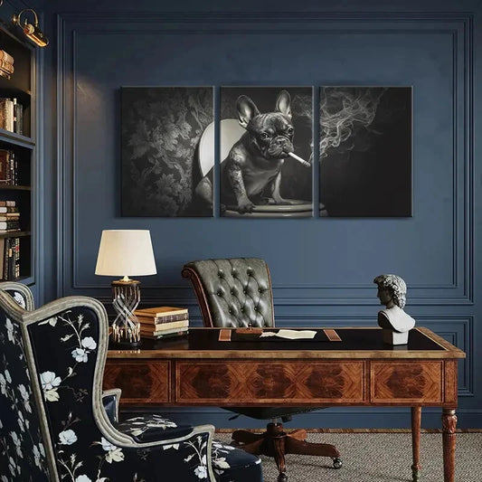 3pcs Artistic French Bulldog Smoking Cigarette Metal Print Ready to Hang Art