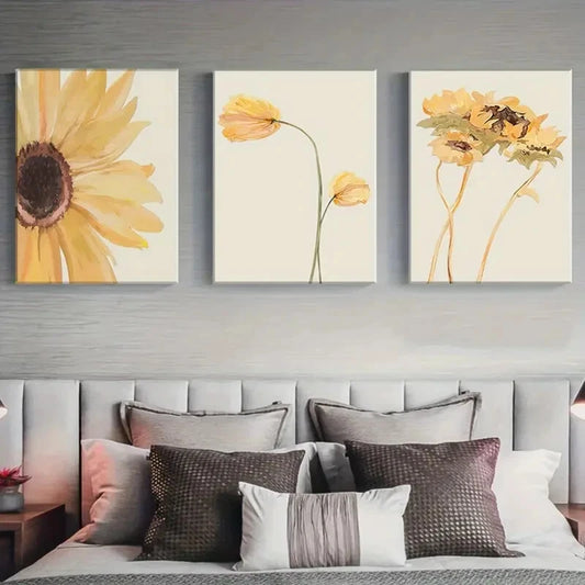 3pcs Yellow Sunflower Aesthetic Metal Print Ready to Hang Art