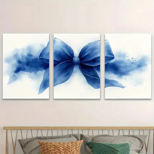 3pcs Elegant Blue Bow Watercolor Metal Print Ready to Hang Art