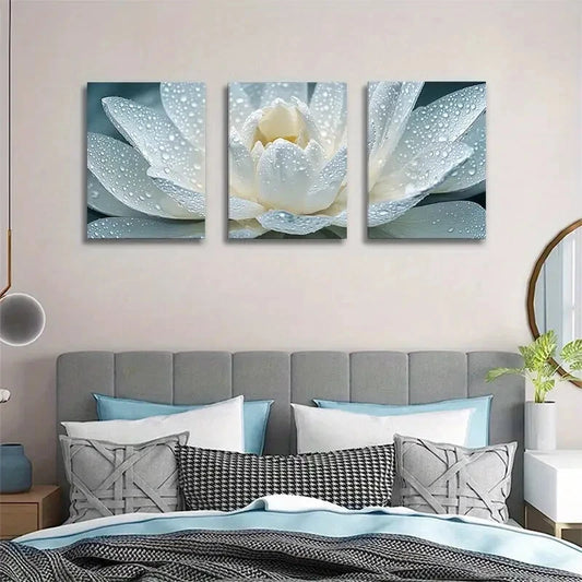 3pcs Elegant Water Lily Close Up Macro Metal Print Ready to Hang Art