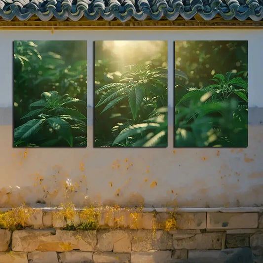 3pcs Vibrant Sun in Weed Illustration Metal Print Ready to Hang Art