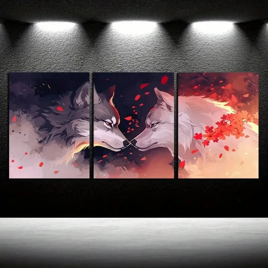 3pcs Pair of Wolves in The Forest Metal Print Ready to Hang Art