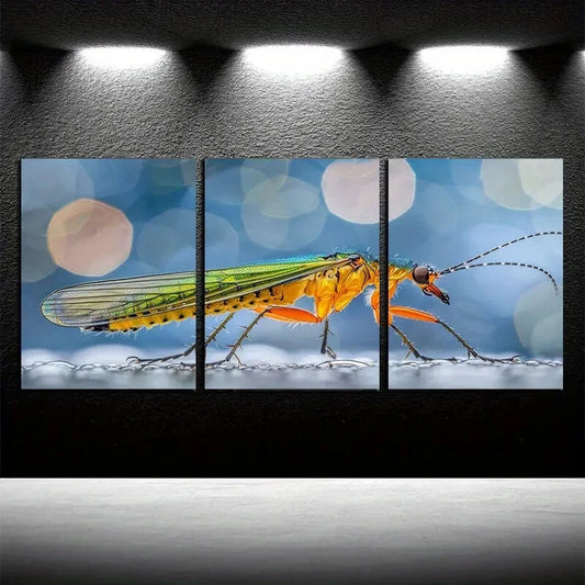 3pcs Vibrant Firefly Moonlight Illustration Metal Print Ready to Hang Art