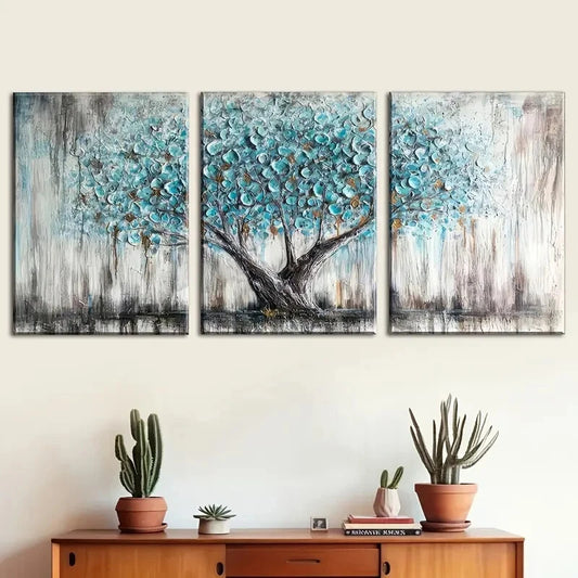 3pcs Vintage Blue Tree of Life Décor Perfect Wall Art Set Canvas Framed 40x60cm - High Quality Print 100% Australian Made Wall Canvas Ready to Hang