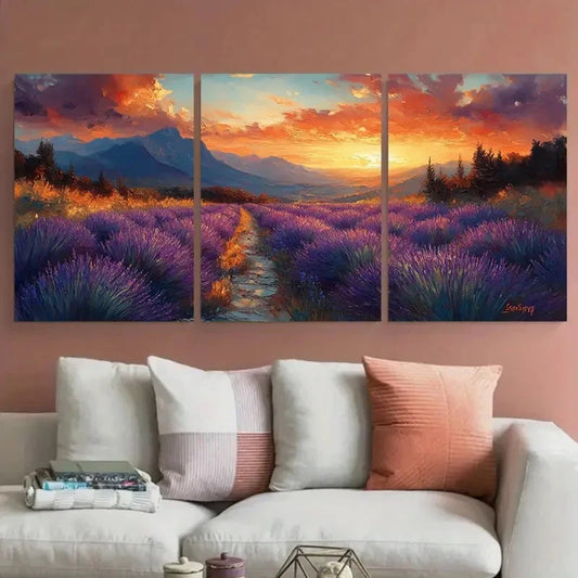 3pcs Provence Lavender Fields & Sunset Mountain Metal Print Ready to Hang Art