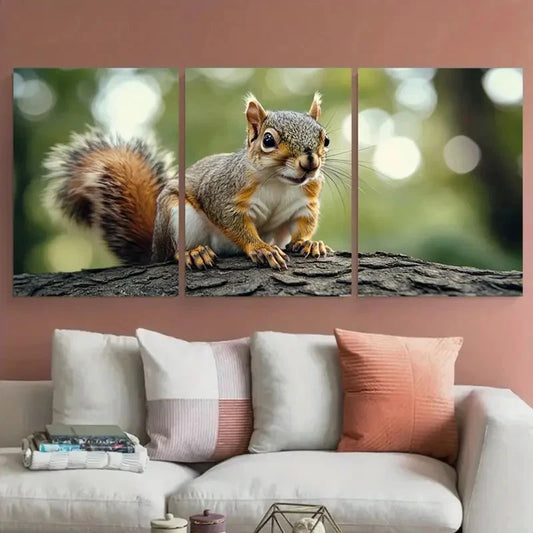 3pcs Cute Squirrel Woodland Wildlife Design Metal Print Ready to Hang Art