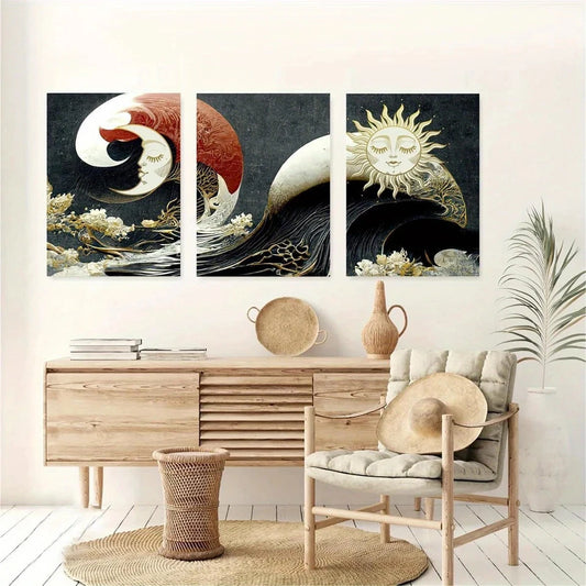 3pcs Sun and Moon Japanese Ocean Metal Print Ready to Hang Art