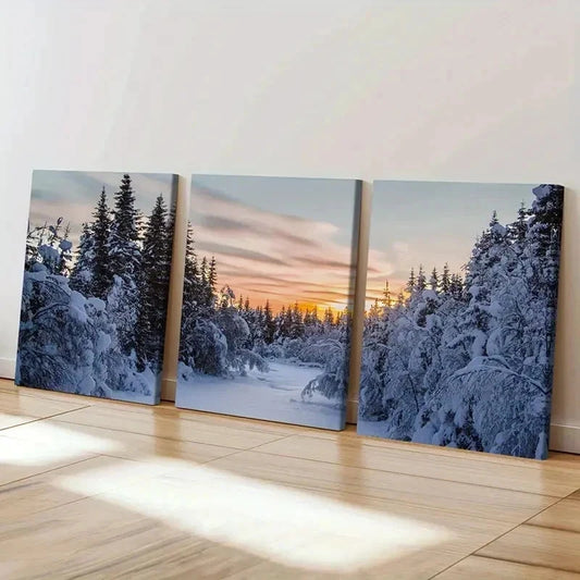 3pcs Snow Forest Natural Landscape Wall Art Set Canvas Framed 40x60cm - High Quality Print 100% Australian Made Wall Canvas Ready to Hang