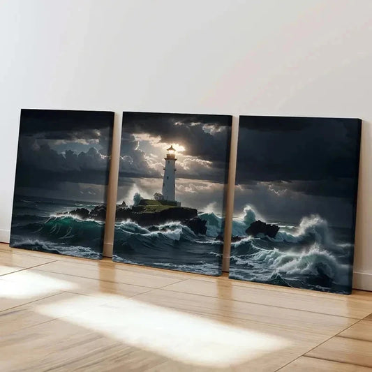3pcs Sea Lighthouse Wave Island Vintage Wall Art Set Canvas Framed 40x60cm - High Quality Print 100% Australian Made Wall Canvas Ready to Hang