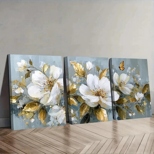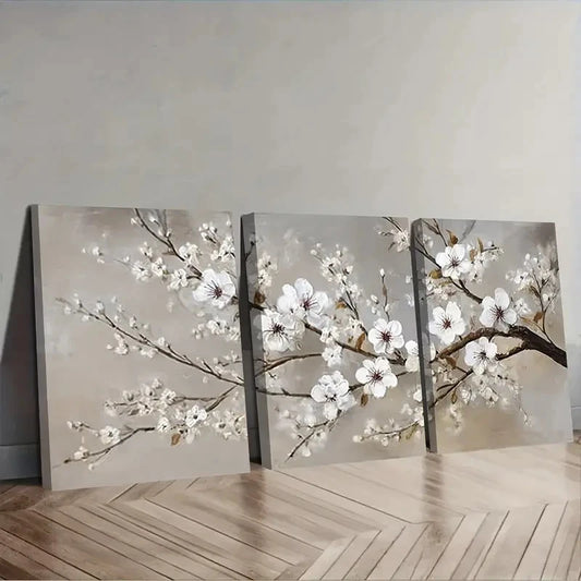 3pcs White Blossoms Plum Blossom Wall Art Set Canvas Framed 50x70cm - High Quality Print 100% Australian Made Wall Canvas Ready to Hang