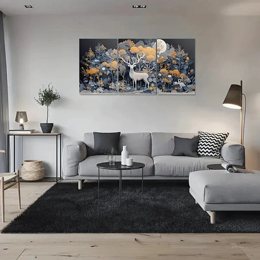 3pcs Enchanted Forest Moonlit Deer Wall Art Set Canvas Framed 40x60cm - High Quality Print 100% Australian Made Wall Canvas Ready to Hang