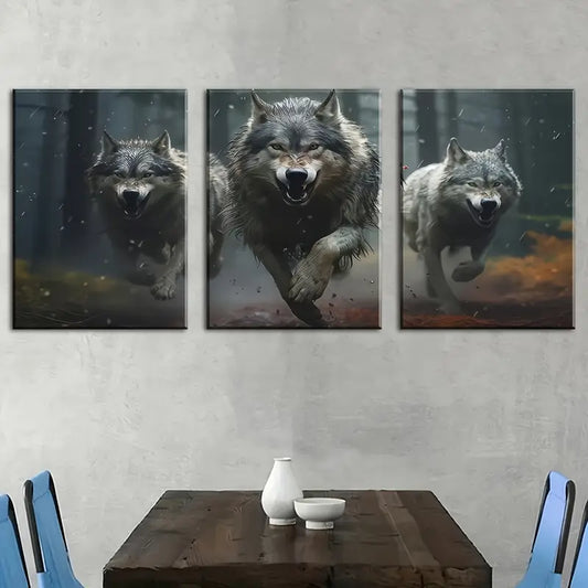 3pcs Wolf Pack Portrait Wall Art Set Canvas Framed 40x60cm - High Quality Print 100% Australian Made Wall Canvas Ready to Hang