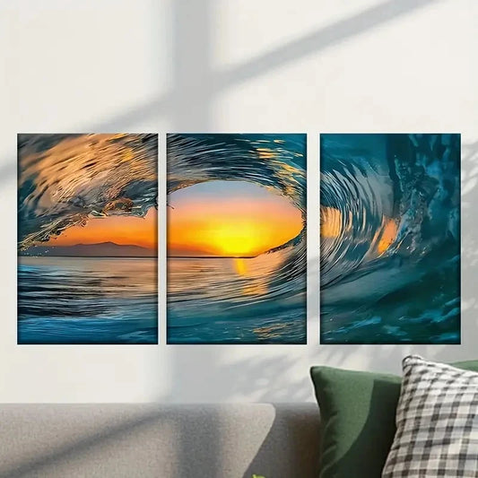 3pcs Vibrant Ocean Wave & Sunset Wall Art Set Canvas Framed 60x90cm - High Quality Print 100% Australian Made Wall Canvas Ready to Hang