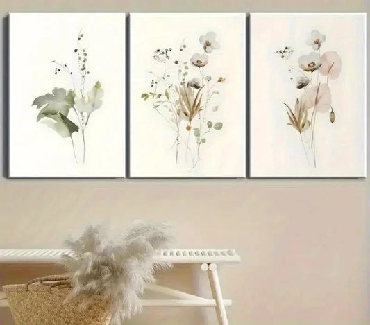 3pcs Watercolor Wildflowers Leaves Plants Painting Metal Print Ready to Hang Art