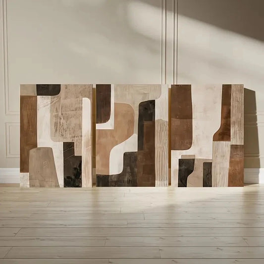 3pcs Abstract Brown and Beige Neutral Paintings Metal Print Ready to Hang Art