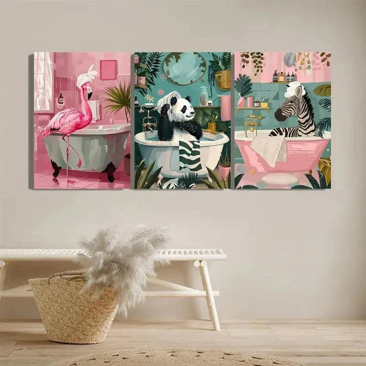 3pcs Flamingo Panda and Zebra Patterns Metal Print Ready to Hang Art