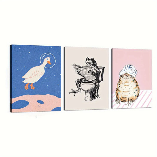 3pcs Animal, Duck and Frog Bathroom Classic Design Metal Print Ready to Hang Art