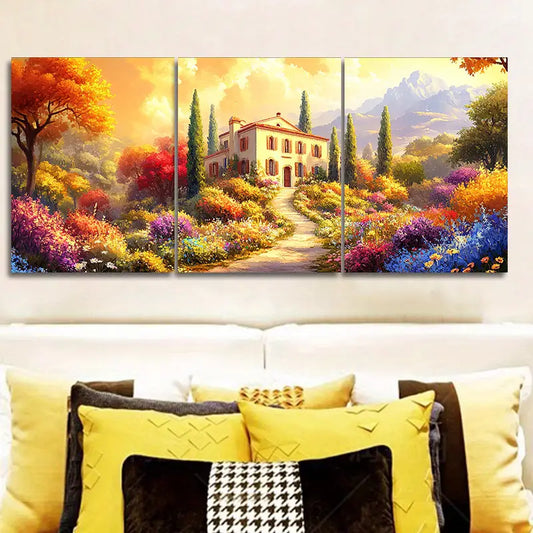 3pcs Watercolor Italian Countryside Vibrant Blossoms Metal Print Ready to Hang Art