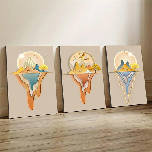 3pcs Minimalist Symmetrical Design Aesthetic, Elegant Metal Print Ready to Hang Art