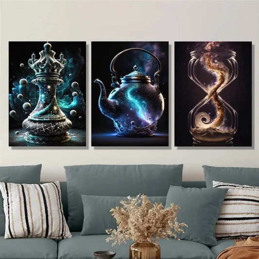 3pcs magic container chess, teapot, with Timer, Metal Print Ready to Hang Art
