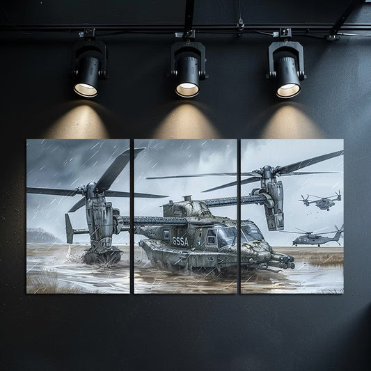 3pcs Military Helicopter Artwork Wall Art Set Canvas Framed 50x70cm - High Quality Print 100% Australian Made Wall Canvas Ready to Hang