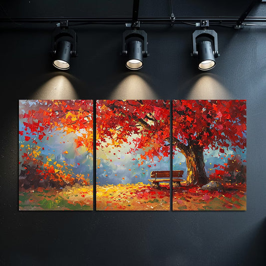 3pcs Autumn Maple Tree Fall Foliage Scene Wall Art Set Canvas Framed 50x70cm - High Quality Print 100% Australian Made Wall Canvas Ready to Hang