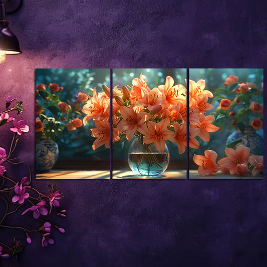 3pcs Vibrant Lilies Illustration Wall Art Set Canvas Framed 60x90cm - High Quality Print 100% Australian Made Wall Canvas Ready to Hang