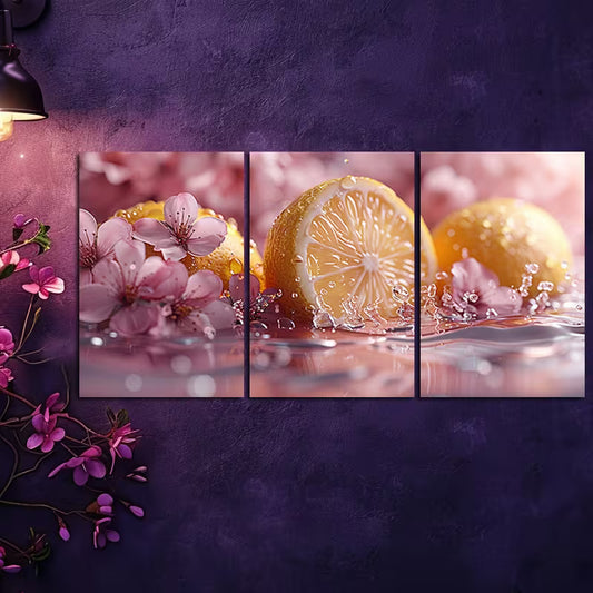 3pcs lemon and cherry blossom in water Wall Art Set Canvas Framed 60x90cm - High Quality Print 100% Australian Made Wall Canvas Ready to Hang