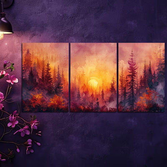 3pcs Misty Forest Scenery with Vibrant Autumn Wall Art Set Canvas Framed 60x90cm - High Quality Print 100% Australian Made Wall Canvas Ready to Hang