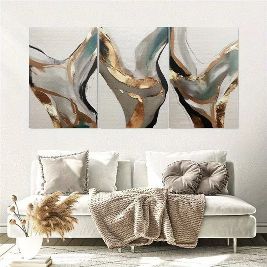 3pcs Abstract Golden and Blue Line Waves Wall Art Set Canvas Framed 60x90cm - High Quality Print 100% Australian Made Wall Canvas Ready to Hang