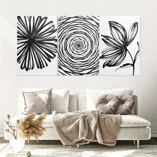 3pcs Black And White Abstract Botanical Wall Art Set Canvas Framed 60x90cm - High Quality Print 100% Australian Made Wall Canvas Ready to Hang