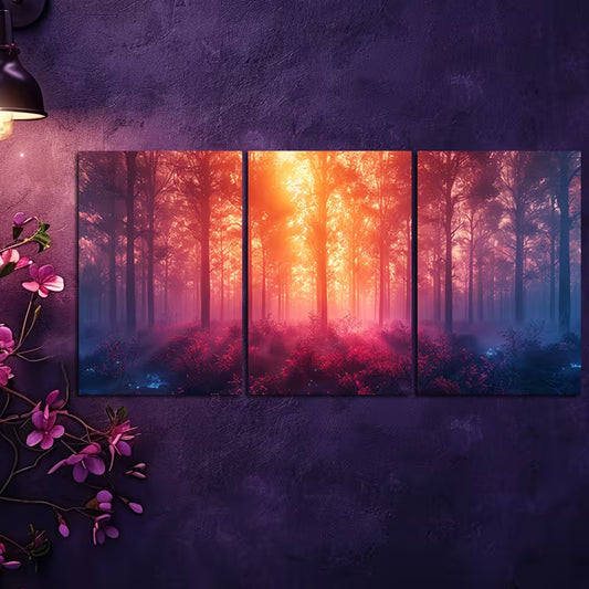 3pcs Vibrant Foliage and Sunlight Effect Wall Art Set Canvas Framed 60x90cm - High Quality Print 100% Australian Made Wall Canvas Ready to Hang
