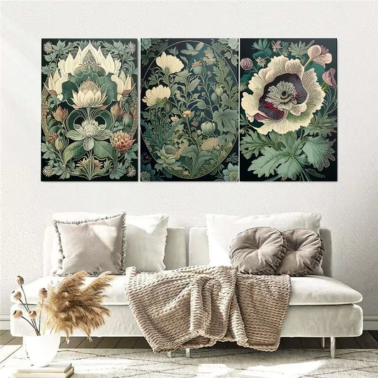 3pcs Pieces Modern Botanical Flowers Paintings Wall Art Set Canvas Framed 60x90cm - High Quality Print 100% Australian Made Wall Canvas Ready to Hang