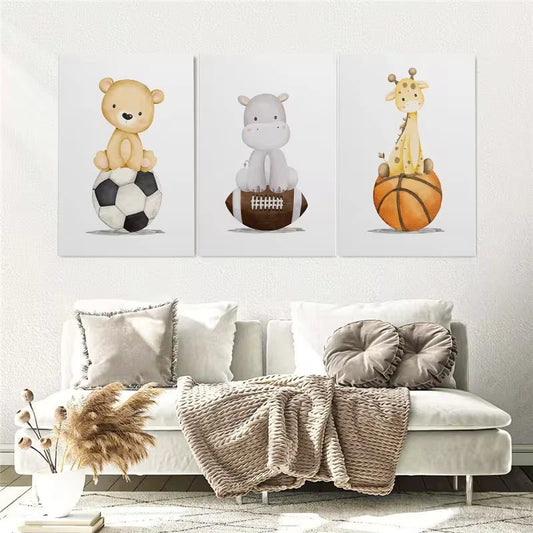 3pcs Sports Safari Animal Watercolor Wall Art Set Canvas Framed 60x90cm - High Quality Print 100% Australian Made Wall Canvas Ready to Hang