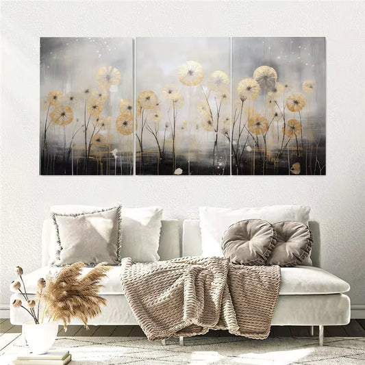 3pcs Abstract Dandelions Luxury Floral Wall Art Set Canvas Framed 60x90cm - High Quality Print 100% Australian Made Wall Canvas Ready to Hang