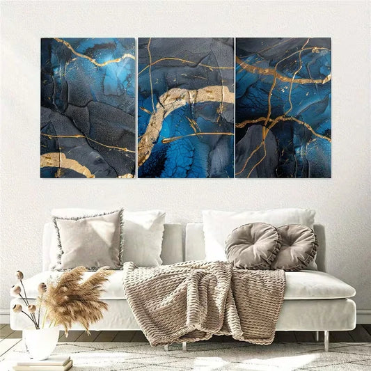 3pcs Abstract Golden & Blue Geometric I Wall Art Set Canvas Framed 60x90cm - High Quality Print 100% Australian Made Wall Canvas Ready to Hang