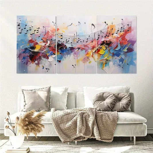 3pcs Modern Abstract Colorful Music Notes Wall Art Set Canvas Framed 60x90cm - High Quality Print 100% Australian Made Wall Canvas Ready to Hang