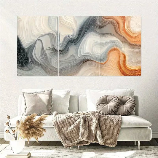 3pcs Abstract Beige & Orange Modern Wall Art Set Canvas Framed 60x90cm - High Quality Print 100% Australian Made Wall Canvas Ready to Hang
