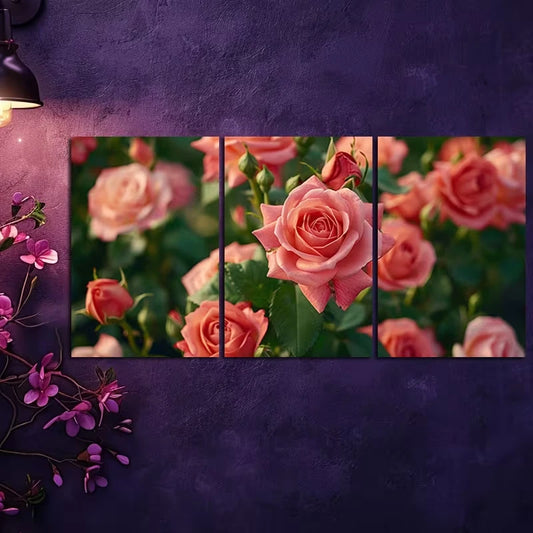 3pcs Rose Floral Garden Illustration Wall Art Set Canvas Framed 60x90cm - High Quality Print 100% Australian Made Wall Canvas Ready to Hang